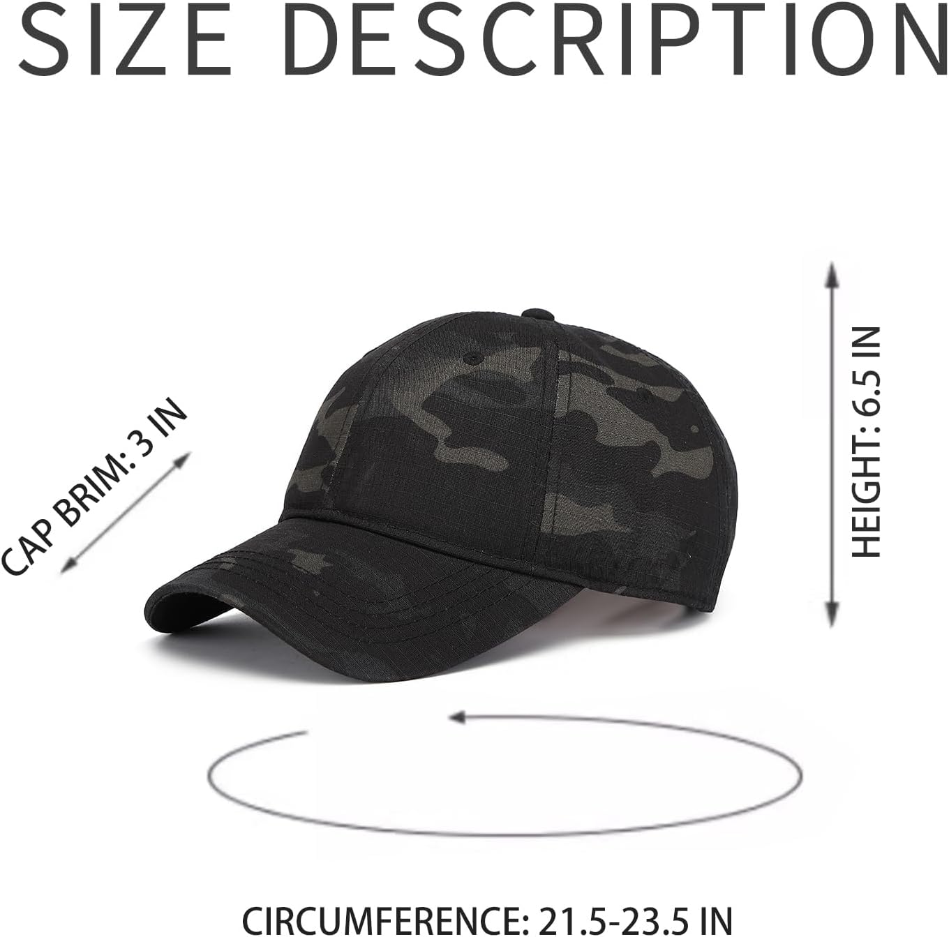 - Adjustable Head Circuit: This baseball hats design with a convenient metal adjustable buckle, the baseball cap offers a perfect fit for most head sizes. The cap ranging from 21.6″-23.6″ in circumference,height measures 6.5″, while the cap-brim length is 3″
